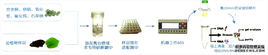 析宇組織研磨儀是一種特殊的、快速的、高效率的、多試管的一致系統。它能將任何來源(包括土壤、植物和動物的組織、細菌、酵母、真菌、孢子、古生物標本等)的原始DNA、RNA和蛋白質進行提取和純化。