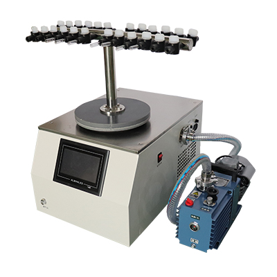 臺式凍干機(1臺)、真空泵(1臺)2XZ-2/2XZ-4可選、T型架(1個)、橡膠閥(24個)、真空連接管(1根)、●可選配:(1)進口真空泵(2)油霧過濾器(3)防返油裝置
