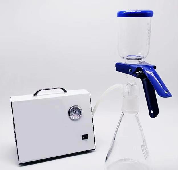 真空泵是提高過濾效率,加強(qiáng)脫氣效果的重要過濾配套設(shè)備。為保障過濾介質(zhì)不被污染,一般均使用無油隔膜式真空泵,此類泵型是通過橡膠膜片的往返運(yùn)動形成真空,其真空壓力一般為0.08Mpa左右(單級),提高過濾速度關(guān)鍵是單位時間內(nèi)的排氣量,及真空泵的流量指標(biāo),在過濾量大、介質(zhì)粘度高時顆粒堵塞濾膜情況下尤顯突出。